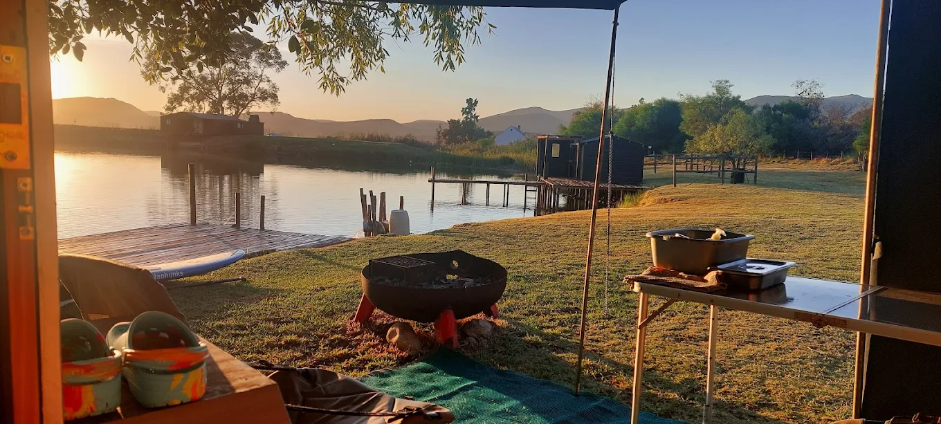 Discover a serene escape at Night Sky Caravan Farm, a welcoming campground set on a peaceful wine farm in Boesmansrivier. This well-reviewed destination in the Western Cape offers a sociable setting centred around a large farm dam, where you can paddle in supplied canoes with the Riviersonderend and Langeberg mountains framing the view.